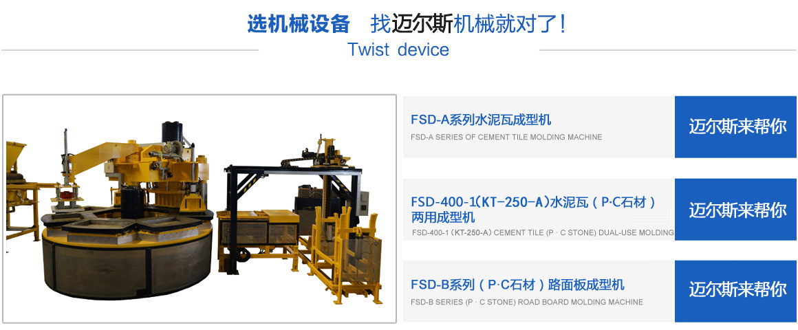 常熟市邁爾斯機械有限公司是一家集研發(fā)、生產、銷售于一體的建材機械高科技企業(yè),其前身為2011年注冊創(chuàng)辦的“常熟市虞山鎮(zhèn)豐順達機械配件廠”,經過多年的努力,于2017年注冊成立“常熟市邁爾斯機械有限公司”,專業(yè)生產模壓水泥彩瓦機、P.C石材機、轉盤式成型機、彩色路面磚機等綠色建材設備。公司以市場為龍頭,以技術為導向,開發(fā)了系列化、標準化的適銷對路的機械產品,并且注冊了多項國家專利技術,銷售范圍覆蓋全國,并且出口越南、老撾等東南亞和其它國家。